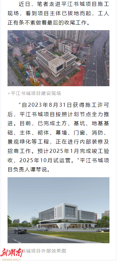 即将竣工验收!平江书城项目迎来新进展→