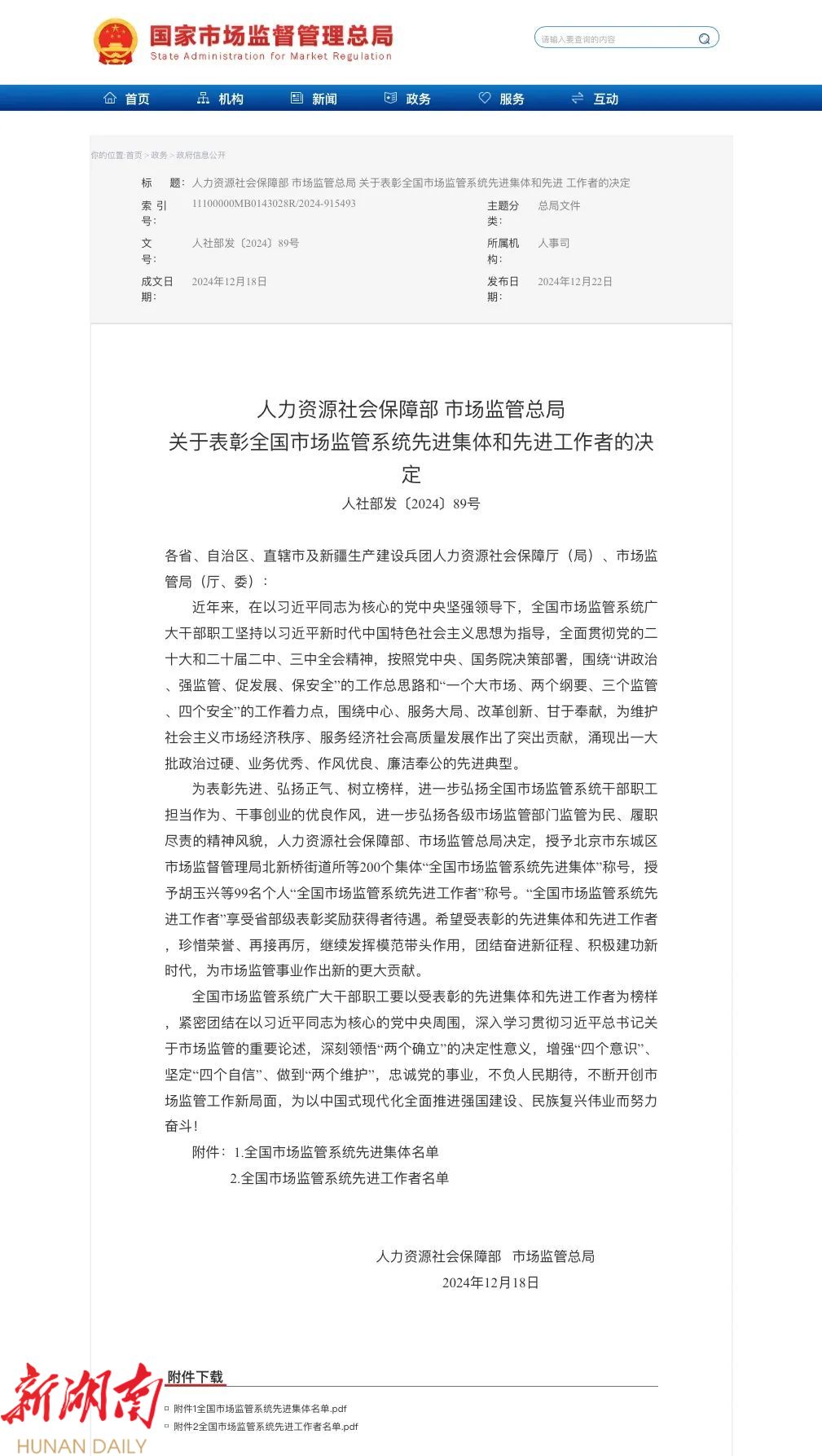 12月22日,全国市场监管系统先进集体和先进工作者表彰大会在北京召开,200个集体、99名个人受到表彰。其中,永定区市场监督管理局副局长王清品被授予“全国市场监管系统先进工作者”称号 。