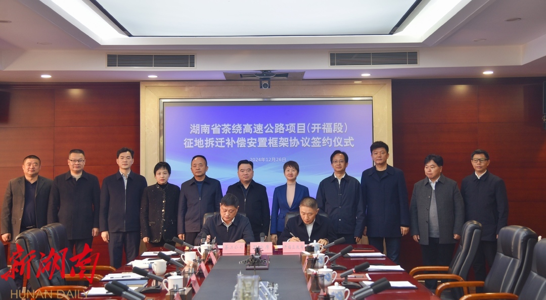 湖南日报·新湖南客户端12月26日讯(记者 荣庭芳)26日上午,湖南省茶绕高速公路项目(开福段)征地拆迁补偿安置框架协议在开福区完成签约,标志着项目(开福段)的征地拆迁工作正式启动,为推动国土报批、早日实现全面开工建设打下了坚实基础。开福区委书记罗玉环,开福区委副书记、区长高伟,茶江高速公路建设开发有限公司党委书记、董事长汤浩南见证签约。