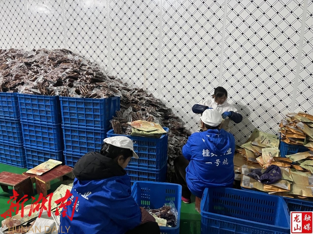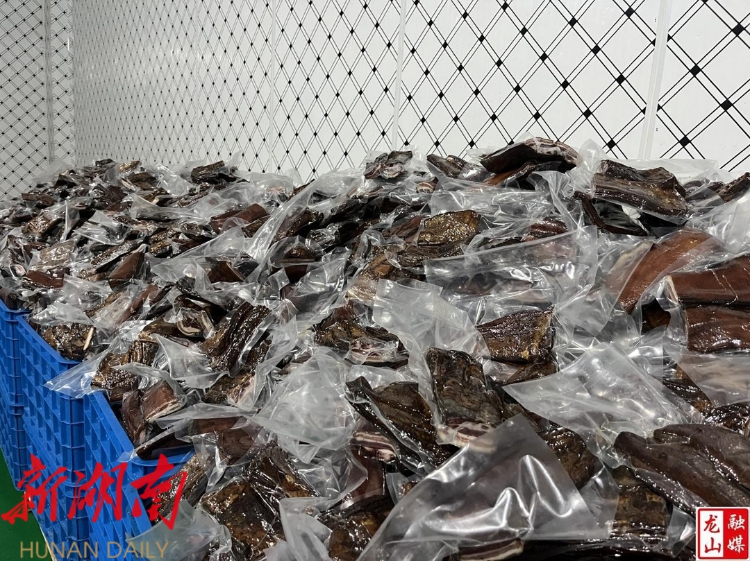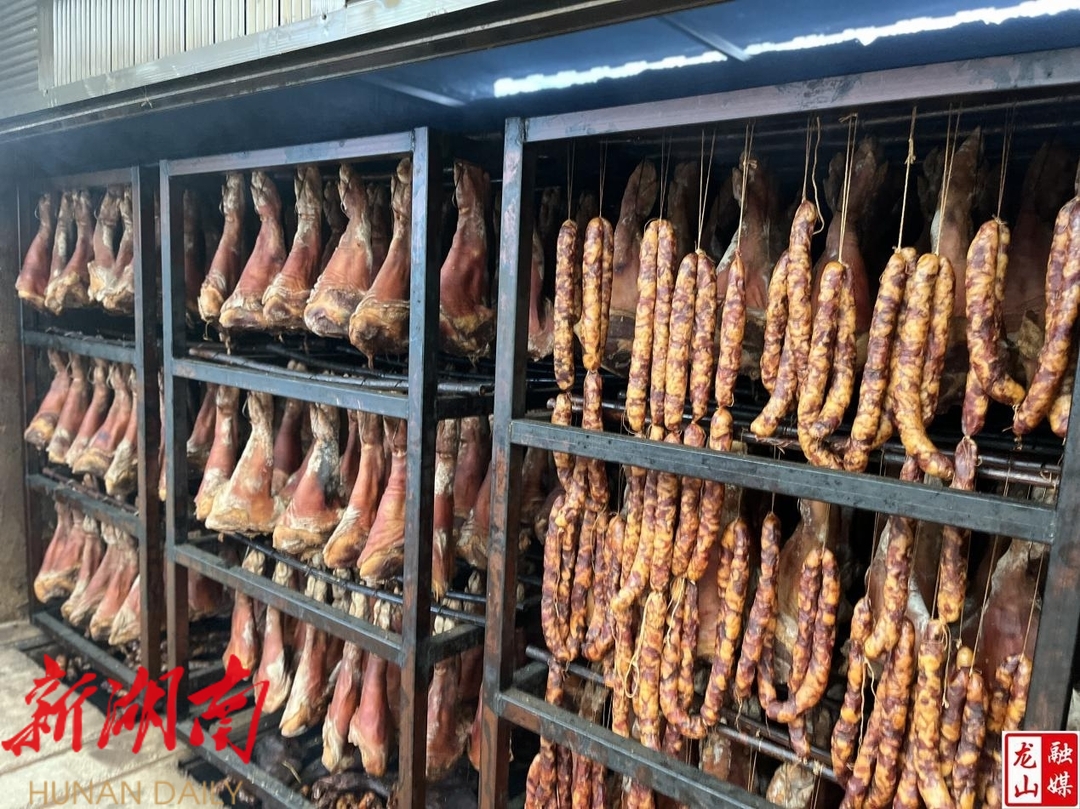 12月26日,笔者走进龙山县桂英农业发展有限责任公司,看到工人们正在有条不紊地灌制香肠。烟熏房里,一排排色泽鲜亮的腊肉挂在烤架上,香味扑鼻。