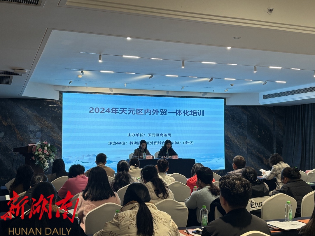 12 月 5 日,天元区商务局组织开展“ 2024 年天元区内外贸一体化培训”, 200 余人参加培训,区委常委、副区长(挂职)乌云其木格出席并致辞。