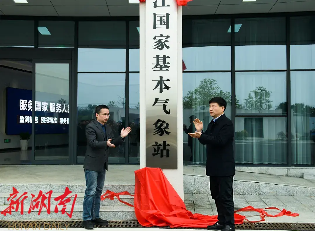 新沅江客户端12月27日讯 (记者 黄曦 李咏澎)12月26日,沅江国家基本气象站新站正式投入运营,市委副书记、市长罗必胜与益阳市气象局局长蔡前进共同为新站揭牌,副市长谢春和致辞。