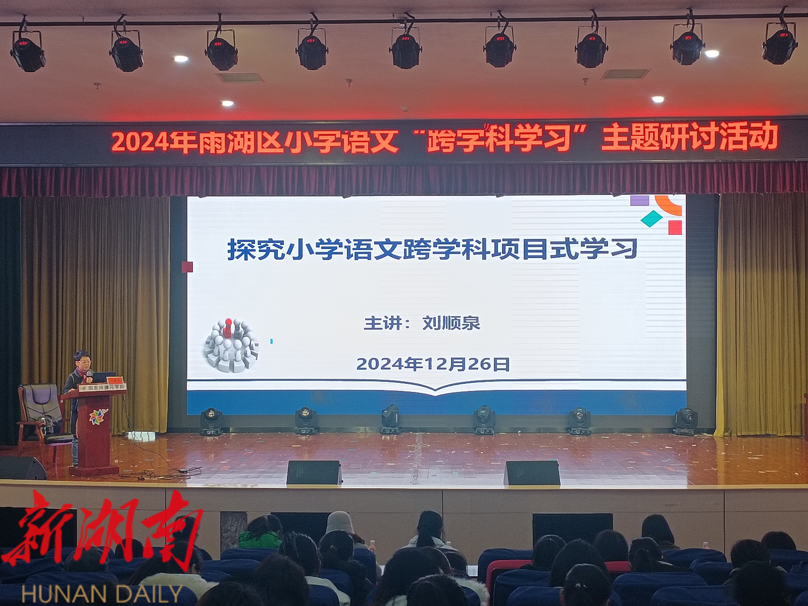 (通讯员 李思玲 刘富婷)为进一步提升区域小学语文教师的专业发展理念,全面落实课程方案与标准,加快教师专业成长的发展脚步,共同探索跨学科教学的新理念与实践路径,12月26日,雨湖区小学语文教师工作坊四坊进行第二次线下集中研修,特邀海南省三亚市小学语文教研员、正高级教师、特级教师刘顺泉开展《探究小学语文跨学科项目式学习》专题讲座,区教育研究培训中心小学语文教研员曹斌及全区四年级语文老师参加此次培训。