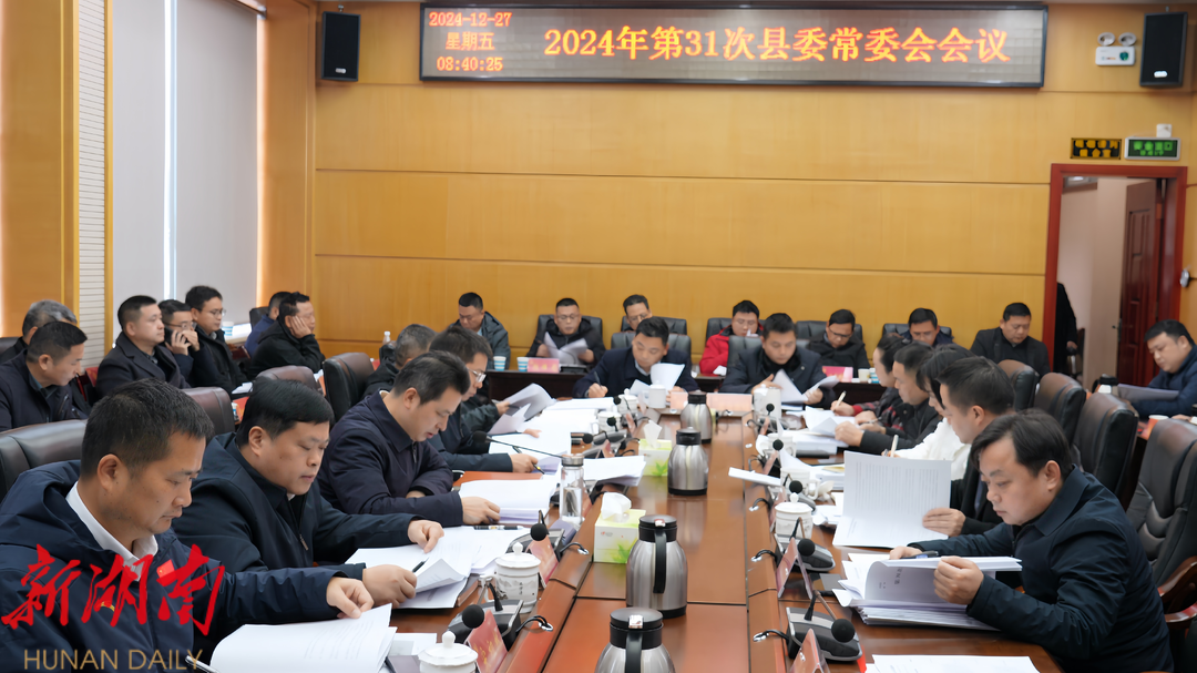 新湖南客户端12月28日讯(记者 郑湘)12月27日上午,湘西土家族苗族自治州古丈县委书记滕朝辉主持召开2024年第31次县委常委会会议,传达学习习近平总书记在中共中央政治局第十八次集体学习时、在纪念乔石同志诞辰100周年座谈会上、在听取海南省委和省政府工作汇报时的重要讲话和对做好“三农”工作作出的重要指示精神,传达学习中央经济工作会议和中央农村工作会议精神,传达贯彻省委书记沈晓明在湘西州调研时的讲话和指示精神,听取县人大常委会、县政府、县政协、县法院、县检察院各党组工作汇报,审议相关文件,研究部署县“两会”筹备等相关工作。