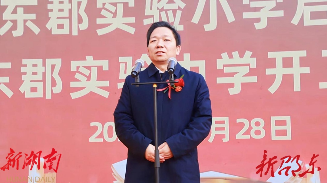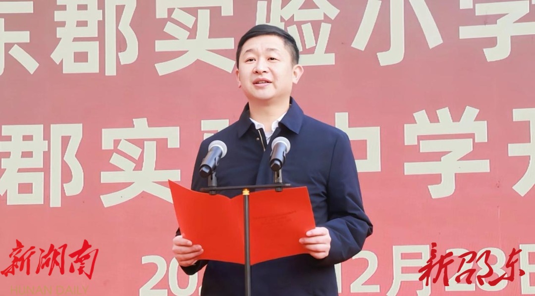 付凯军在致辞中指出,教育是民族振兴、社会进步的基石,承载着无数家庭对美好生活的向往,关系着国家的未来与希望。邵东市委、市政府将始终把教育摆在优先发展的战略位置,持续加大教育投入,不断改善办学条件,努力为孩子们创造更加公平、优质的教育环境。付凯军要求,职能部门要全力支持学校建设,提供有力保障和优质服务,推动东郡实验中学尽快建成启用,吸引更多企业助力教育;东郡学校教师要勇挑重担、开拓创新,以高尚的师德和精湛的技艺培育学生,全力将“东郡”打造成为一所特色鲜明、质量一流的名校;东郡学子要珍惜学习机会,树立远大志向,提升综合素质,成长为新时代优秀青少年,用知识和本领回报社会、建设家乡。