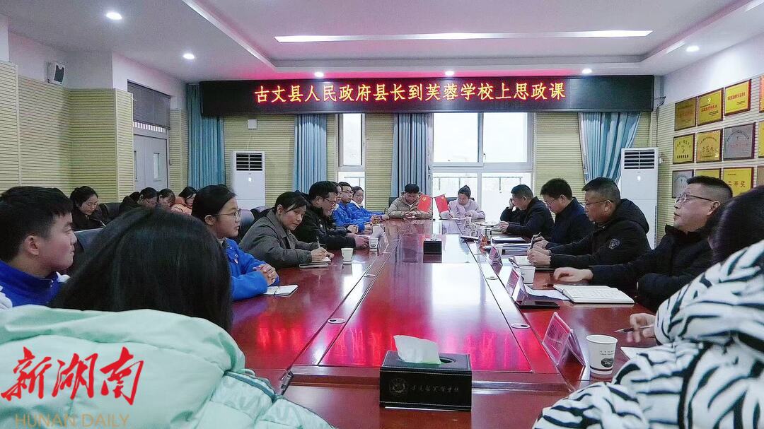 新湖南客户端12月28日讯(记者 杨秀知)12月26日,湘西土家族苗族自治州古丈县委副书记、县长陈建新到县芙蓉学校,向师生代表们宣讲党的二十届三中全会精神并上思政课。