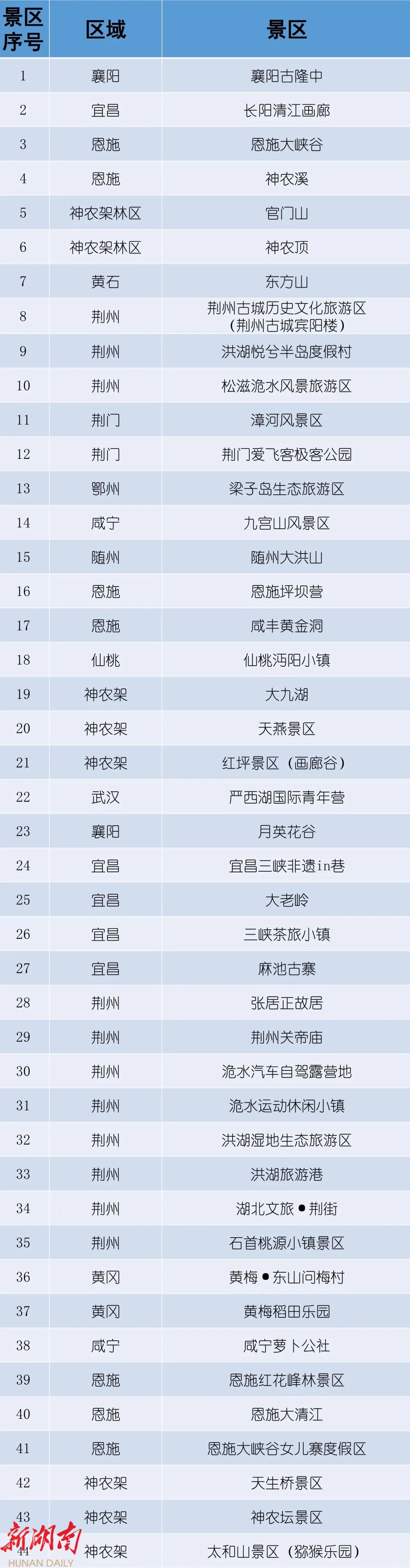 44个景区名单如下↓
