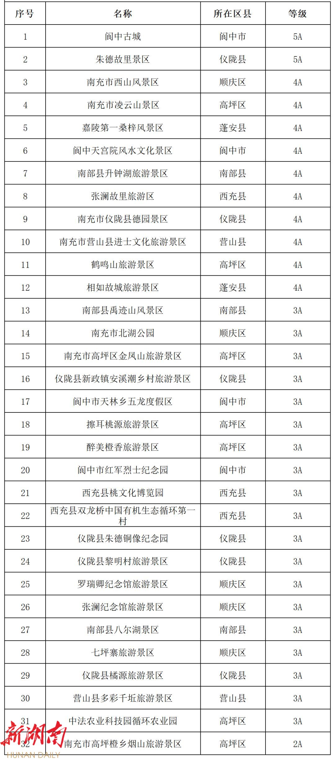 32个景区名单如下↓