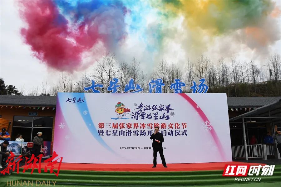 12月27日上午,巍然矗立在海拔1390米七星山之巅的七星山滑雪场,迎来了第三届张家界冰雪旅游文化节暨七星山滑雪场的开板仪式,引燃今冬张家界冰雪旅游季。