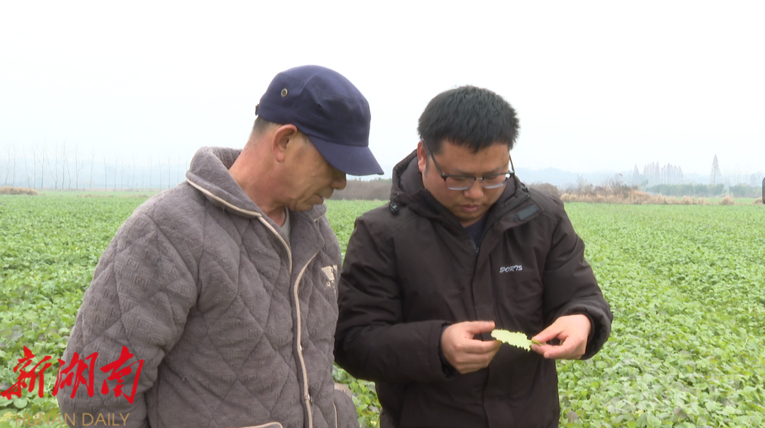 在南嘴镇目平湖北村的油菜田里,一片片嫩绿的油菜苗铺满田块,农技人员与油菜种植户毛凯并肩走在田间,检查着每一株油菜。今年毛凯利用冬闲田,种植了100余亩的油菜,如今气温下降,油菜也因为天气寒冷长势受到影响。看到一株长势稍差的油菜,农技人员立即弯下腰,摘下一片叶子,仔细观察后提醒农户要做好管控旺苗、管护弱苗、管好壮苗和防渍、防冻、防病虫“三管三防”工作,确保油菜平稳越冬,实现稳产增收。