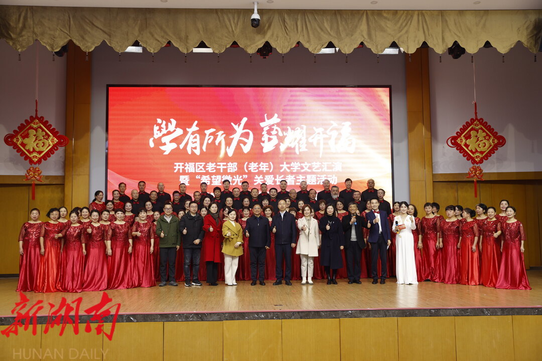 湖南日报·新湖南客户端12月30日讯(通讯员 邱小云 熊赳)12月30日,在长沙市慈善总会、长沙市开福区委组织部、开福区民政局、开福区文化旅游体育局的悉心指导下,开福区慈善会携手开福区老干部(老年)大学举办 “学有所为 艺耀开福”开福区老干部(老年)大学文艺汇演暨“希望微光”关爱长者主题活动。