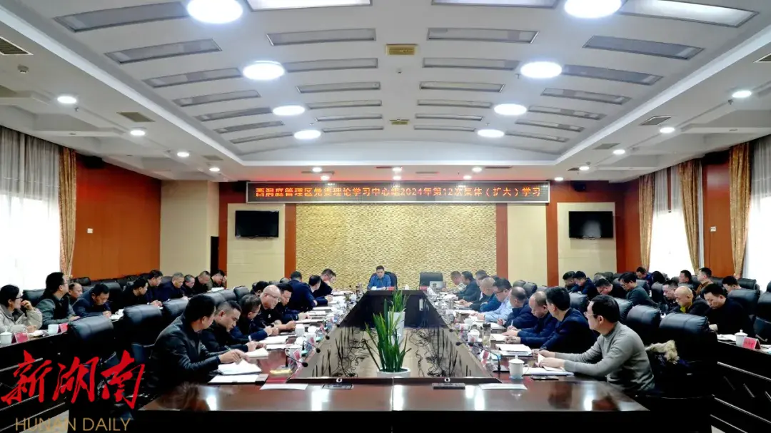 12月30日,西洞庭管理区党委理论学习中心组2024年第12次集体(扩大)学习在鑫湖缘九楼会议室召开。区党委书记李智勇主持会议并讲话。区党委副书记、管委会主任叶春华出席会议。