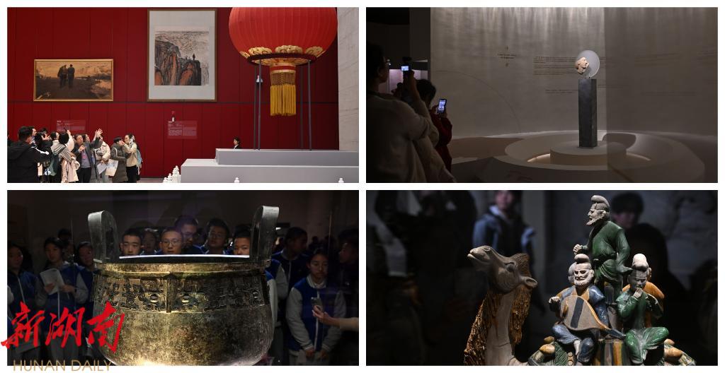 拼图:走进中国国家博物馆感受“文博热”:(左上)“风展红旗如画——馆藏红色经典文物展”(右上)“美的多元——古希腊的艺术与生活”展览(左下、右下)“古代中国”基本陈列展