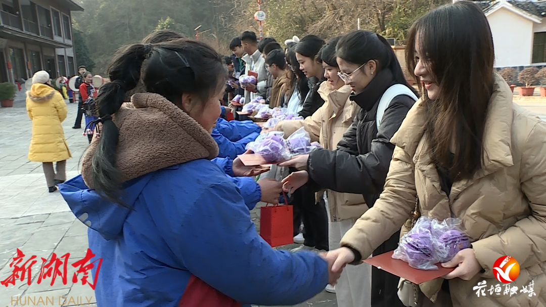 12月28日,由香港培侨中学、香港桂华山中学 、香港圣贞德中学等学校的30余名学生组成的青年交流团,走进花垣县十八洞村开展交流互鉴活动。