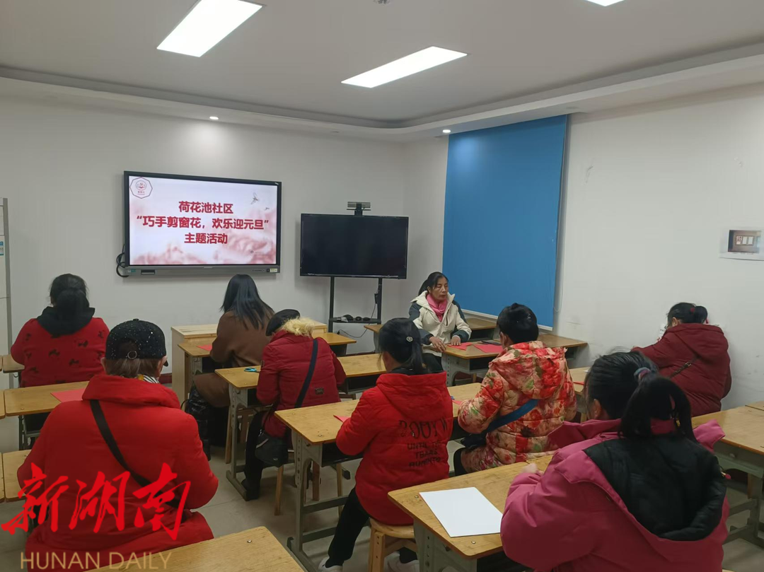 湖南日报·新湖南客户端12月31日讯(通讯员 唐钰慧)为营造欢乐喜庆的节日气氛,弘扬中国传统文化,丰富辖区居民的文化生活,31日下午,开福区望麓园街道荷花池社区新时代文明实践站组织辖区居民在社区二楼活动室开展“巧手剪窗花 ,快乐迎元旦”主题活动。