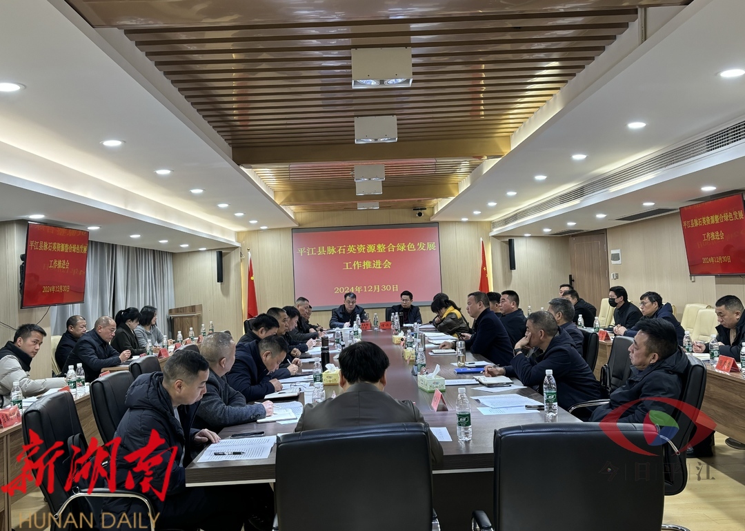 12月30日,我县召开脉石英资源整合绿色发展工作推进会。 副县长 夏海 出席 ,平江高新区、县自然资源局、公安局、发改局、财政局、信访局、人社局、林业局、市场监督管理局、岳阳市生态环境局平江分局、税务局、应急管理局、交通局、司法局、天岳投资集团 、 三墩乡、南江镇等相关单位负责人参加。