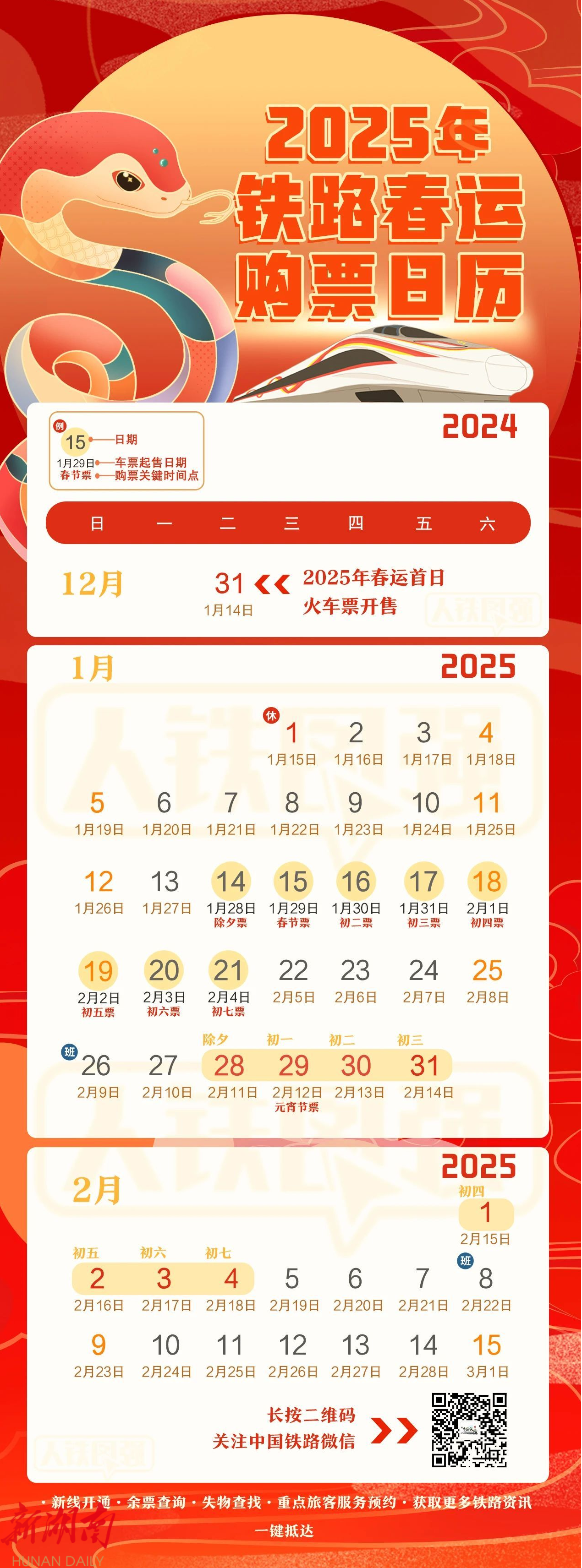 “2025铁路春运购票日历”请查收↓