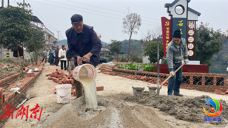 在村庄建设的热潮中,石眼潭村八十二岁的老党员舒代金精神矍铄,身体力行,与村民们投工投劳,满腔热忱地为家乡的建设添砖加瓦。他们的脸上洋溢着幸福的笑容,额头淌下辛勤的汗水,共同交织成一幅和美乡村新图景,展现了石眼潭村蓬勃发展的生机与活力。