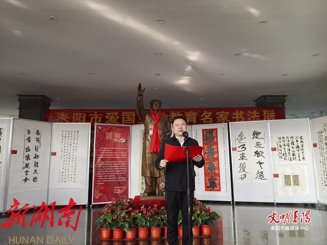 张涛指出,耒阳文脉厚重,书香绵长,生于斯、长于斯的耒阳人历来素有家国情怀,推动爱国主义教育常态化、长效化和易熟知、易接受开展是我们义不容辞的责任。我们用书法展览的形式将传统文化与爱国教育有机结合、深度融合,既是践行习近平文化思想的生动体现,又是拓宽爱国主义教育途径的有益探索,也是赋予书法丰富内涵、发掘书法时代价值的具体实践。希望全市广大书法爱好者自信自强,守正创新,围绕提升耒阳新质生产力、加快“ 211+X” 产业布局、推进文明创建等中心工作,潜心钻研,匠心独运,真正做到胸中有大义,心中有人民,肩头有责任,笔下有乾坤,创作更多力透纸背、昂扬向上、形神俱佳的优秀作品,引领全市人民踔厉奋发,勇毅前行,为加快“五个耒阳”建设,加速挺进“全省十强”提供有力的文化支撑。(通讯员 资一帆)