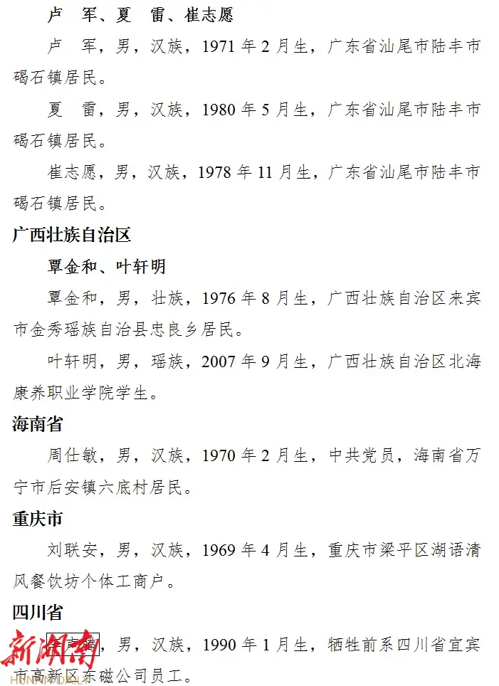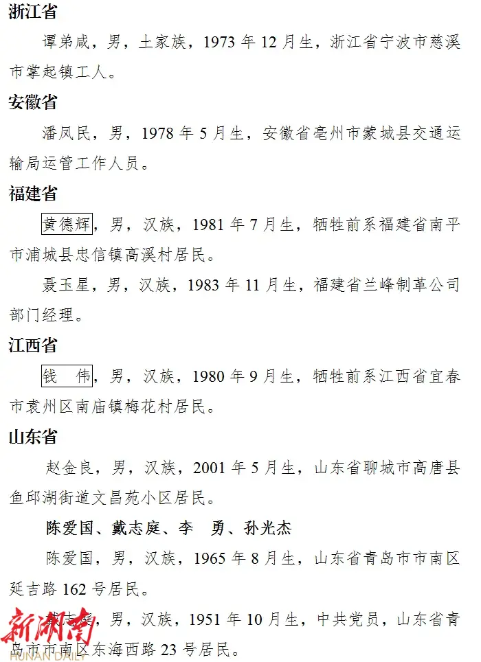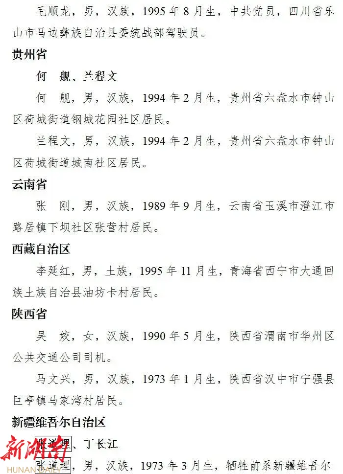 2025年1月3日,中央政法委在京发布2024年第四季度见义勇为勇士榜。根据网络关注度和各地各单位推荐意见进行综合评审,共有42位见义勇为勇士光荣上榜。 其中,湖南有1个群体上榜 。