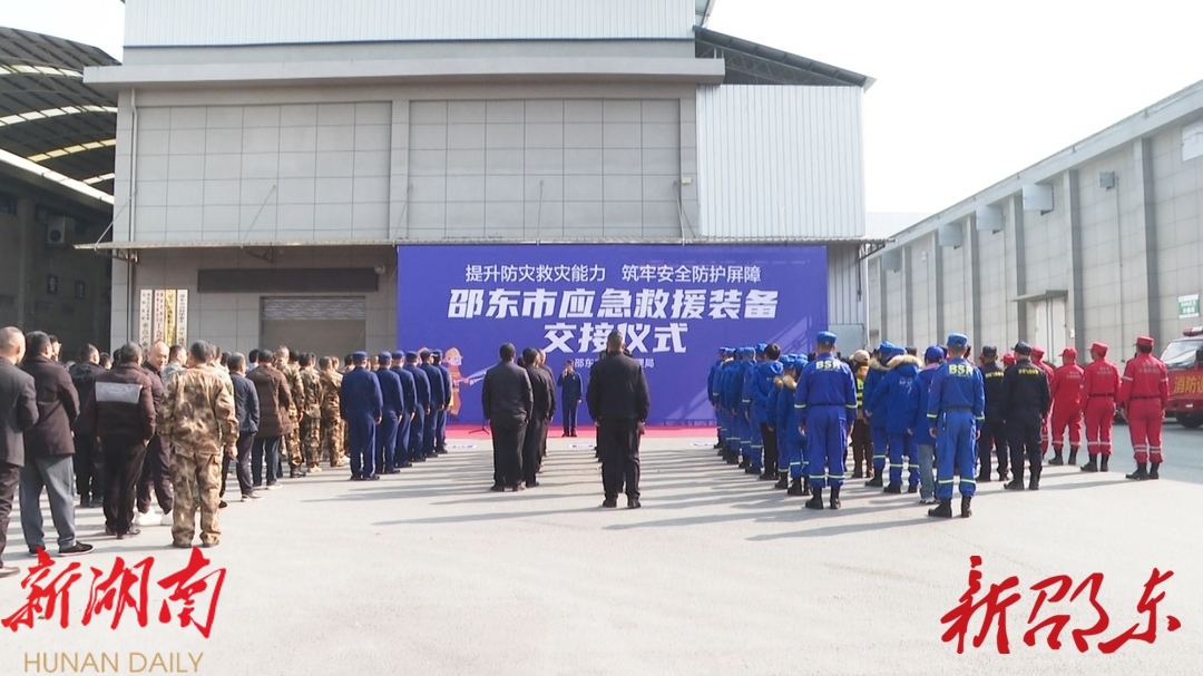 新邵东客户端1月5日讯(记者 姚天启) 1月5日上午,邵东市举行应急救援装备交接仪式,将一批投入专项资金1000余万元购置的应急救援装备向全市各乡镇(街道、场)发放。邵东市副市长刘书地出席交接仪式。