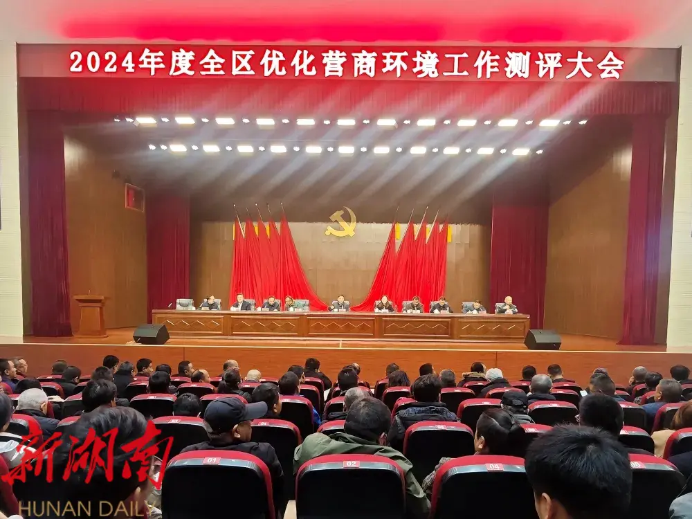 会上,区党委委员、武装部部长辛勤宣读了全区2024年营商环境工作情况通报,园区企业负责人采取匿名扫码的方式现场进行测评打分,评议结果排名最末位的区直部门、驻区单位主要负责人分别作表态发言。