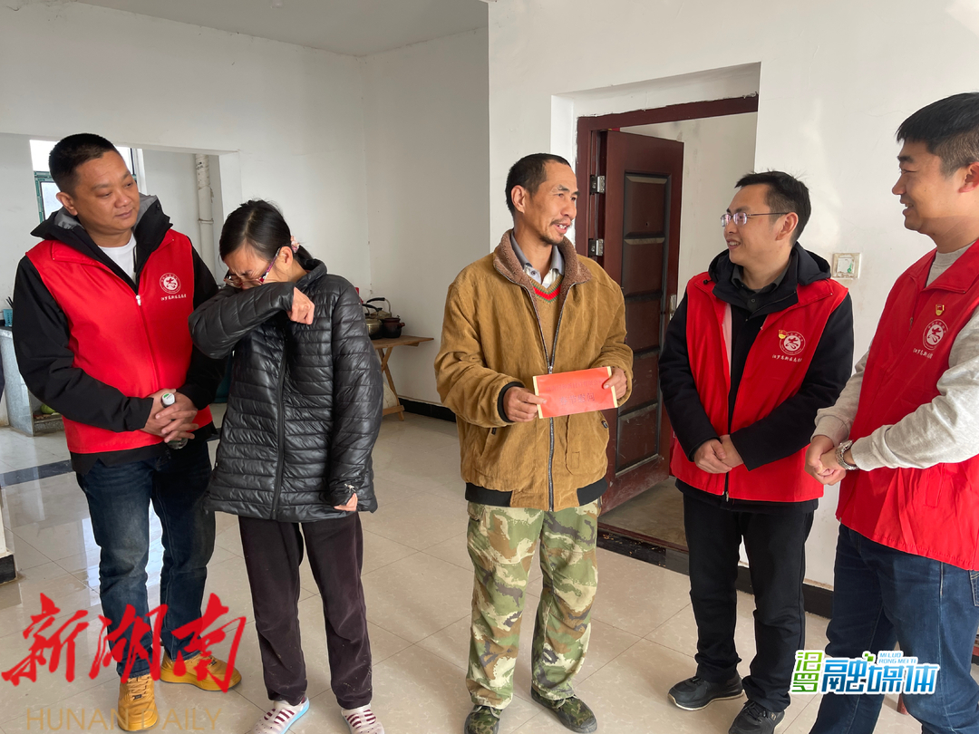 在桃林寺镇东塘社区红家坡安置区,市委办驻村工作队和爱心党员们走访了朱大军一家。朱大军夫妻俩体弱多病,收入来源有限,两个子女一人在湖南师范大学就读,一人就读职校。 慰问人员鼓励他们好好培养子女,努力向前看,并为其送上了慰问金及米、油等过年物资。