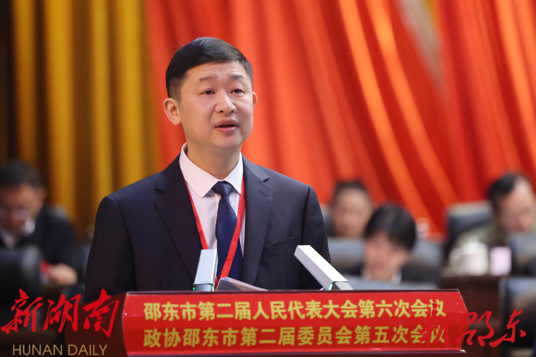 付凯军说,2024年是实施“十四五”规划的攻坚之年,也是邵东发展史上极具挑战、极为难忘的一年。全市上下坚持以习近平新时代中国特色社会主义思想为指导,深入贯彻党的二十届三中全会精神,在上级和市委的坚强领导下,在市人大及其常委会、市政协的监督支持下,锚定“三高四新”美好蓝图,全力实施“八大行动”,围绕“拼在产业、赢在环境、爱我邵东”这条主线,加快建设“三个邵东”,较好完成了全年各项目标任务。全年预计实现GDP增长6.0%,规模工业增加值增长8.6%,固定资产投资增长9%,社会消费品零售总额增长6.5%,服务业增长16%,居民人均可支配收入与经济增长保持同步。发展新动能新优势持续增强,县域竞争力影响力稳步提升。位列全国县域发展潜力百强县(市)第81位,全国投资竞争力百强县(市)第76位,中部地区县域经济百强县(市)第41位,中部地区综合竞争力百强县(市)第31位。获评中国打火机产业高地、全省县域经济突出贡献县、全省农村创业典型县,“活力邵东”新气象愈加显现。