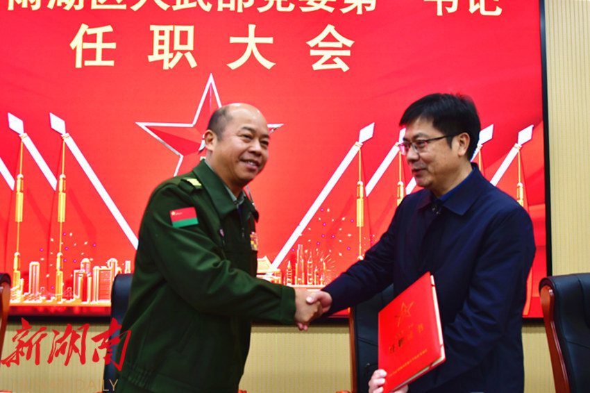 雨湖新闻网讯 (记者 刘雄 通讯员 沈港)1月6日,雨湖区人武部党委第一书记任职大会举行,市委常委、军分区政治委员黄献国,区委书记陈小平出席会议。