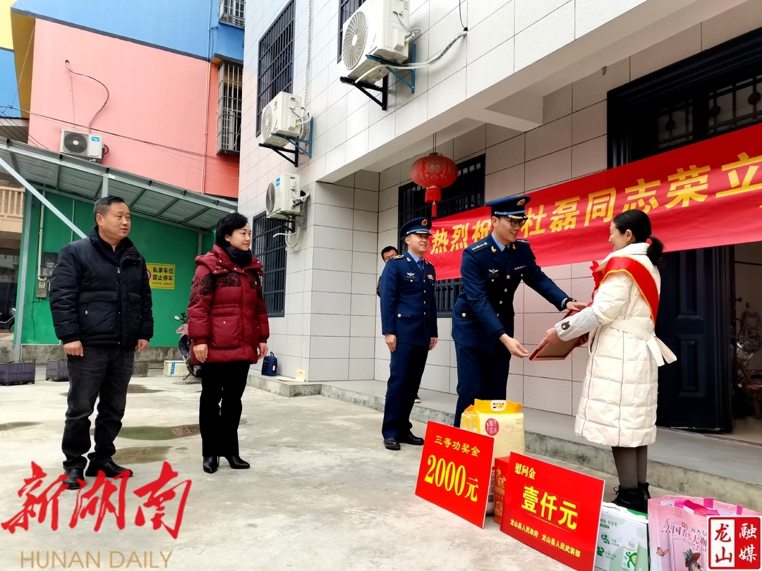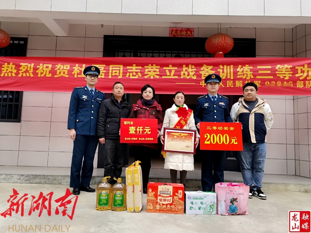 龙山县融媒体中心1月6日讯(通讯员 田顺勇 王奋)“孩子能有今天,多亏了部队的培养。”立功现役军人杜磊母亲双手接过军地领导郑重送达的三等功喜报时高兴地说。1月6日,龙山县退役军人事务局联合中国人民解放军驻新疆某部队和华塘街道人武部为荣立三等功的现役军人杜磊家属送去立功喜报,对家属表示衷心的祝贺并致以殷切的慰问,传递党和政府对军人军属的关心关爱。