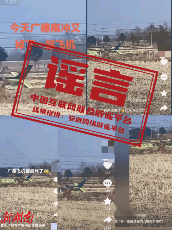 真相: 1月3日,多名网民在社交平台上发布视频称“广德南冲一小飞机坠落造成一人死亡”,并配上“一架绿色小飞机坠落”的画面,引发关注。经当地公安机关调查核实,当日广德市境内并无小飞机坠落,网传视频系将外地飞机坠落视频拼凑嫁接而成。网民王某、李某等13人在没有任何事实依据的情况下编造虚假信息误导群众,造成社会恐慌。目前,王某、李某等13人因散布谣言已被依法行政处罚。(来源:“安徽省互联网违法和有害不良信息举报中心”、“广德公安”微信公众号)