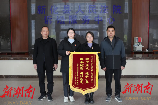 为表达对承办法官公平正义、司法为民的感激之情,湖南某贸易有限公司的工作人员及其委托代理人给承办法官送来了一面鲜红的锦旗,该锦旗既是对承办法官的肯定,亦是对法院工作的高度认可。