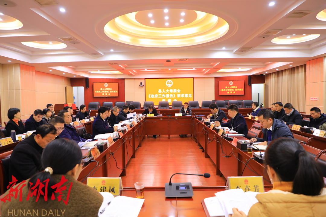 新湖南客户端1月7日讯(通讯员 唐诗琴)1月7日上午,县委副书记、县长蒋华就《政府工作报告(征求意见稿)》,到县人大征求意见建议。县人大常委会主任张波,副主任胡慧川、刘劼,副主任候选人提名人选廖祝春、魏新林、卿仁红以及部分人大代表参加座谈会。