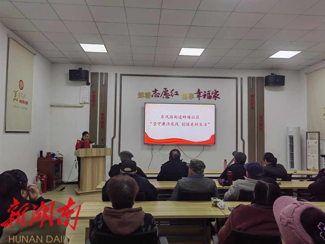 湖南日报·新湖南客户端1月8日讯(通讯员 饶沁芳)为弘扬清风正气,强化党员责任意识、底线意识和纪律意识,近日,开福区东风路街道蚌塘社区第二党支部组织辖区党员开展了书记讲廉政党课活动。辖区内30余名党员群众参加。
