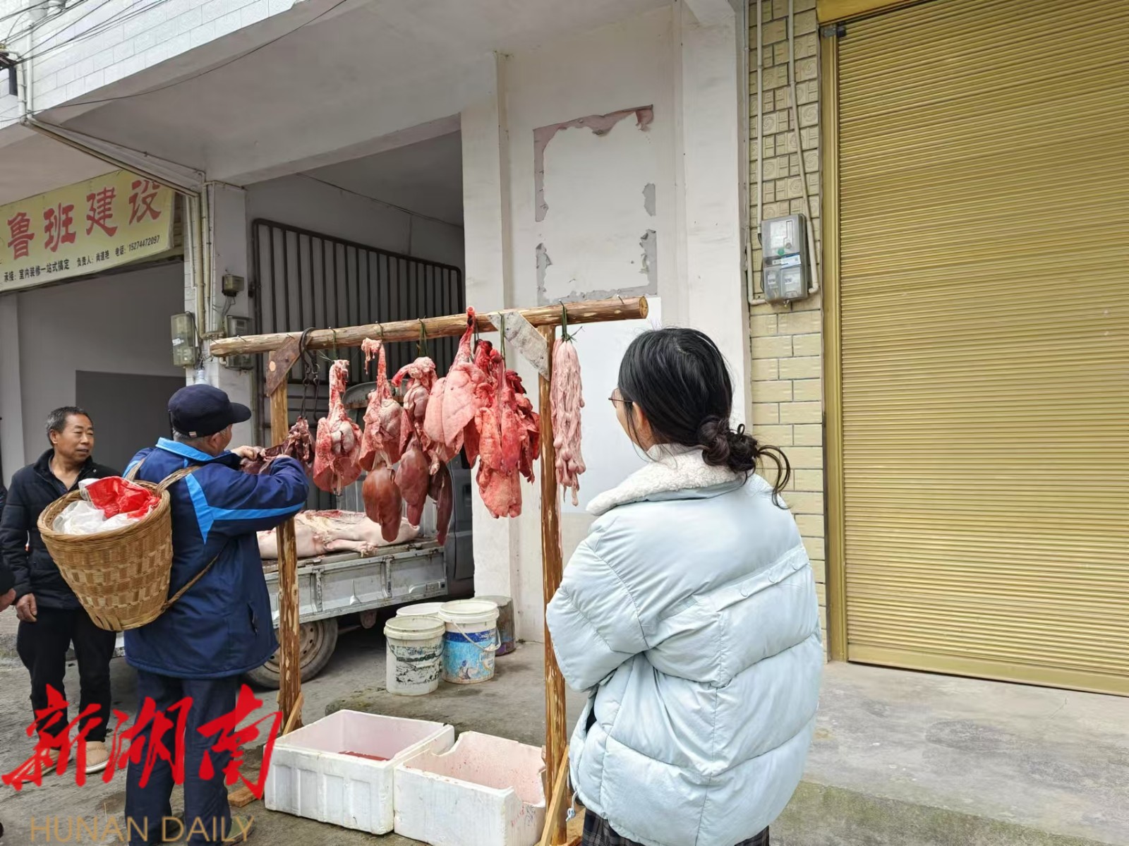 湖南日报·新湖南客户端1月8日讯(通讯员 杨冰鑫)“向老板,猪肉的两证两章齐全吗?让我看看。” “这个肉绝对好,你看看这肉纹理清晰,上面还有盖的章子。” 1月6日,为进一步加强生猪产品的流通管理,预防“白板肉”食品安全隐患,廖家村镇动物防疫站利用赶集日对廖家村镇集贸市场12家猪肉销售摊位开展打击“白板肉”专项检查行动。