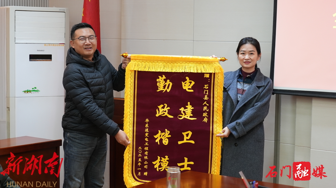 仪式中,华东送变电工程有限公司项目经理陈新民向石门县委、县政府敬献锦旗。国网湖南省电力有限公司、常德供电公司相关负责人分别宣读了感谢信和致答谢辞,向石门县委县政府及所有参与和支持“宁电入湘”工作的全体人员致以崇高敬意和衷心感谢。