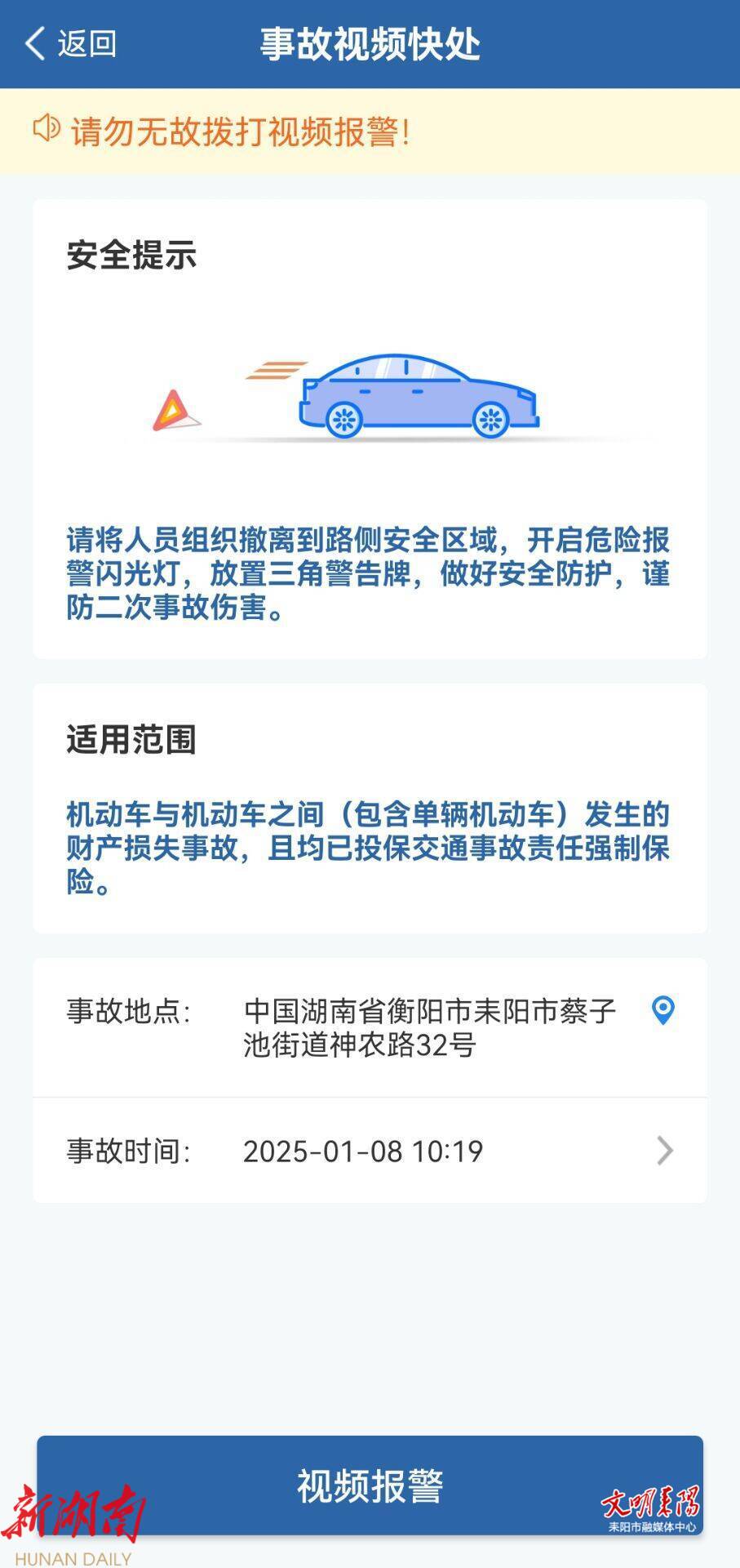 耒阳市视频快处中心负责人王连锁表示:“这种事故处理方式不仅简化了处理流程,还缩短了处理时间。以往,轻微交通事故需要等待交警到达现场进行勘查和认定,不仅耗时较长,还可能造成交通拥堵,而现在,通过视频快处,当事人只需几分钟就能完成事故处理,极大提高了道路通行效率。”