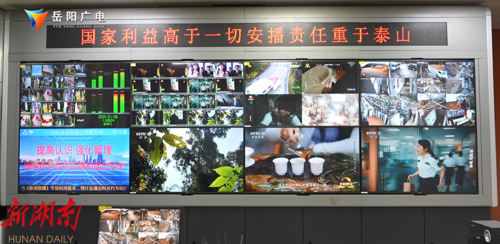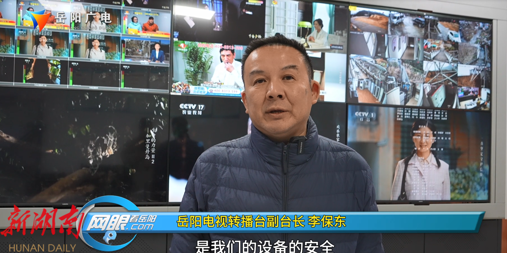 岳阳电视转播台副台长 李保东: 安全播出是我们的设备的安全,(同时)这个人员工作职责、工作态度、工作作风要到位,工作纪律要严格要求,特别是在重要保障期,这些重要的一些节假日的这个播出安全。