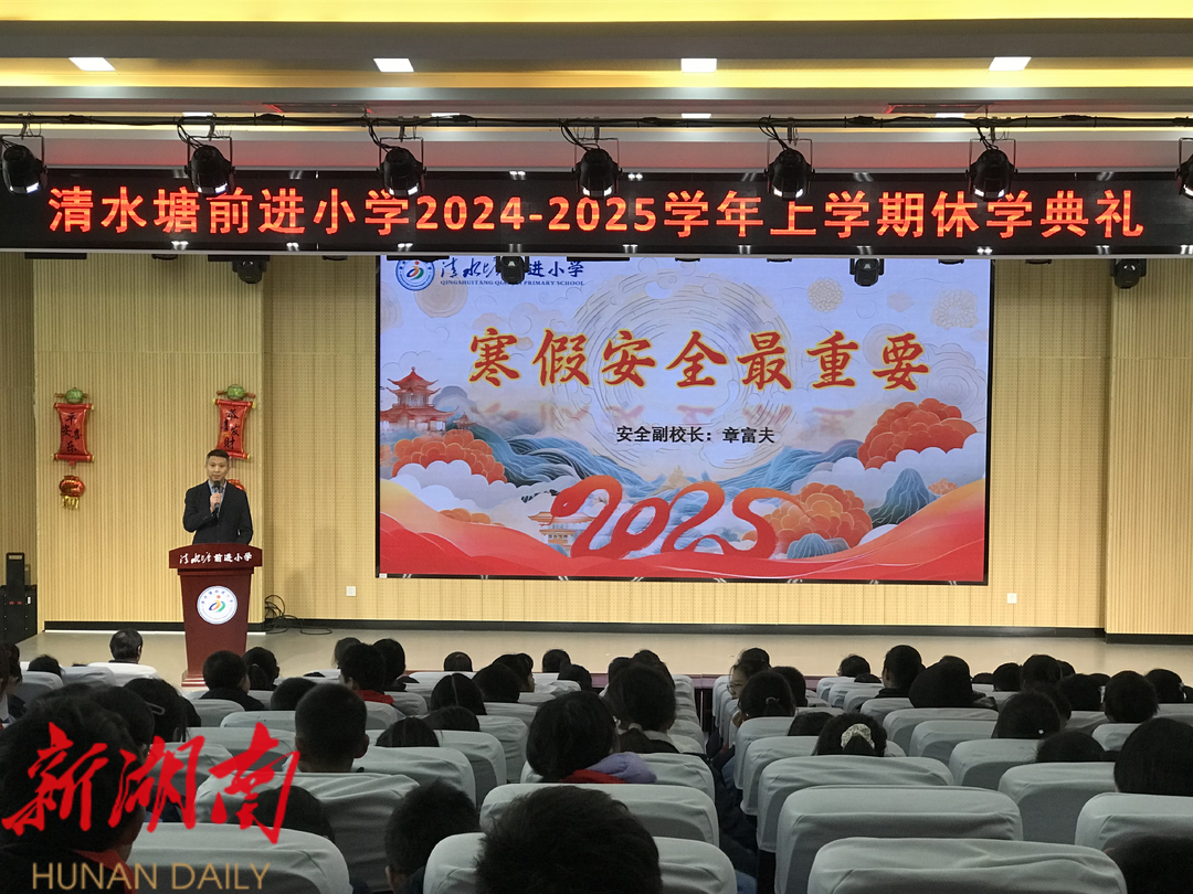 湖南日报·新湖南客户端1月10日讯(通讯员 周立峰)春节将至,为进一步提升学生们安全意识,让学生们度过一个平安快乐的假期,减少因燃放烟花爆竹引发的安全事故,1月10日上午,开福区浏阳河街道前进社区与清水塘前进小学携手开展休学典礼暨“安全知识进校园”宣传活动。