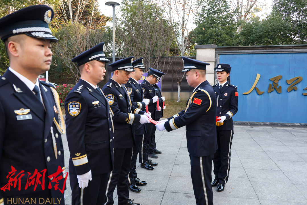 仪式上,侯宇为记功嘉奖民警代表和光荣从警三十周年民警代表颁授了证书奖章和“湖南公安荣誉章”,并代表分局党委向全体民辅警致以最诚挚的节日问候与祝福。
