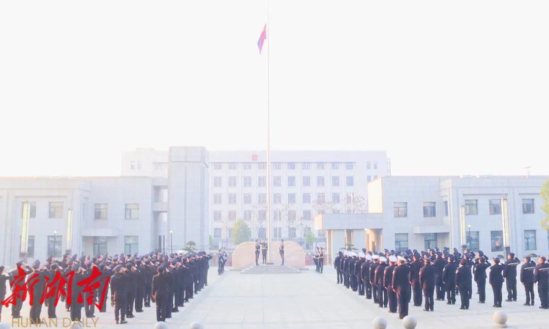 早上8点,庄重的升警旗仪式在汉寿县公安局举行。伴随着警旗冉冉升起,100余名民警整齐列队,高唱《中国人民警察警歌》,并向警旗敬礼。