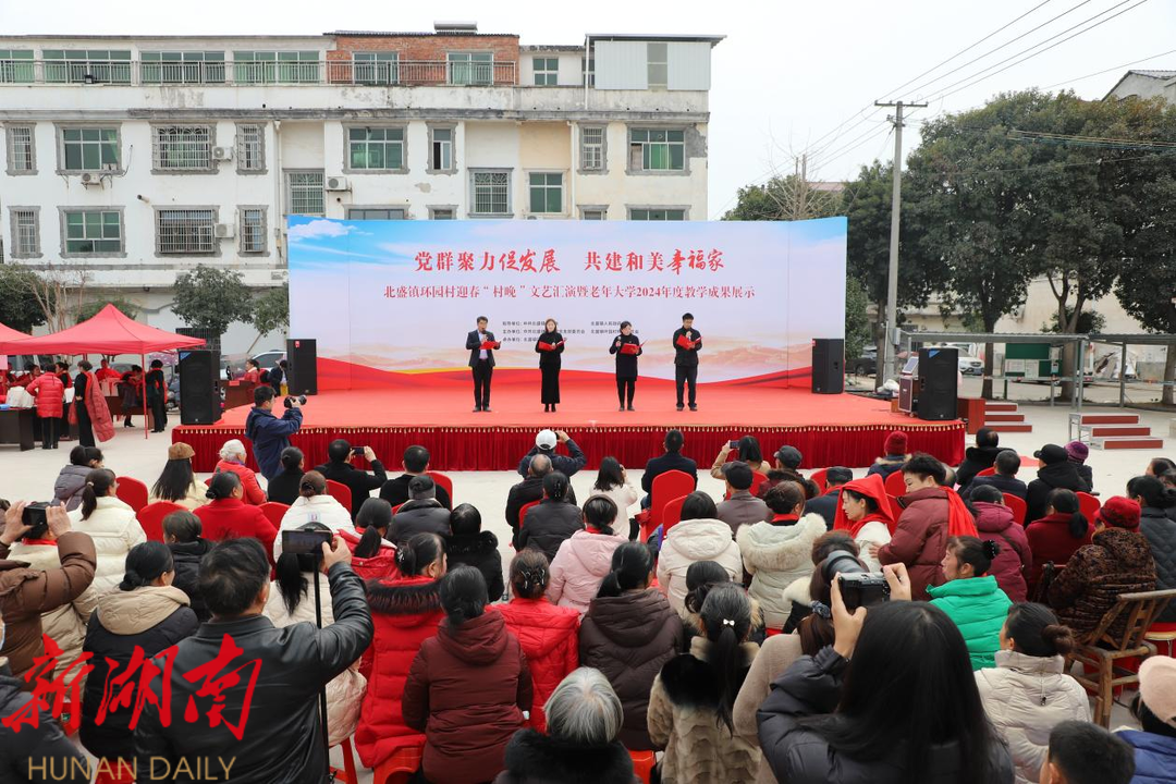 湖南日报·新湖南客户端1月10日讯(通讯员 杨浩哲 彭金锋)1 月 7 日下午,腊八时节,浏阳市北盛镇环园村迎春“村晚”暨老年大学成果展示盛大开启,现场暖意融融。