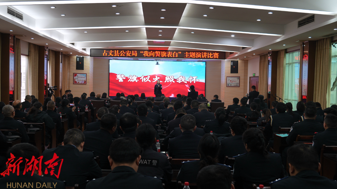 新湖南客户端1月10日讯(记者 郑湘 杨昊天)“ 110 ”,这简单的数字,承载着人民警察最鲜活的符号,是警民鱼水情最坚牢的纽带。“中国人民警察”,平凡的称谓背后,是无数日夜的默默坚守和无私奉献。为进一步凝心聚力、提振士气、丰富警营文化,在第五个“中国人民警察节”到来之际,湘西土家族苗族自治州古丈县公安局举行了隆重的升旗仪式、“我向警旗表白”主题演讲比赛、文艺表演及趣味体育活动。县委常委、县委政法委书记周大钊,副县长、县公安局局长李剑参加。