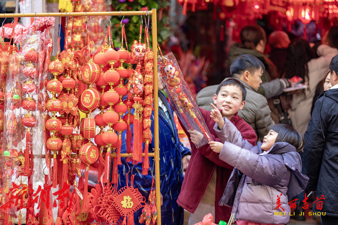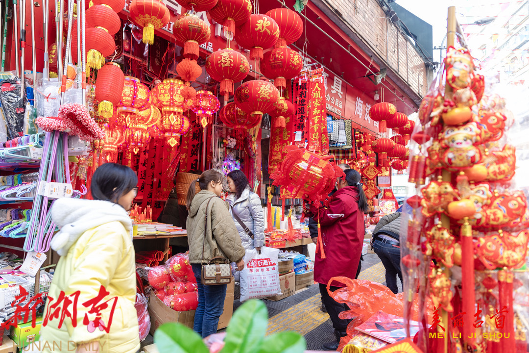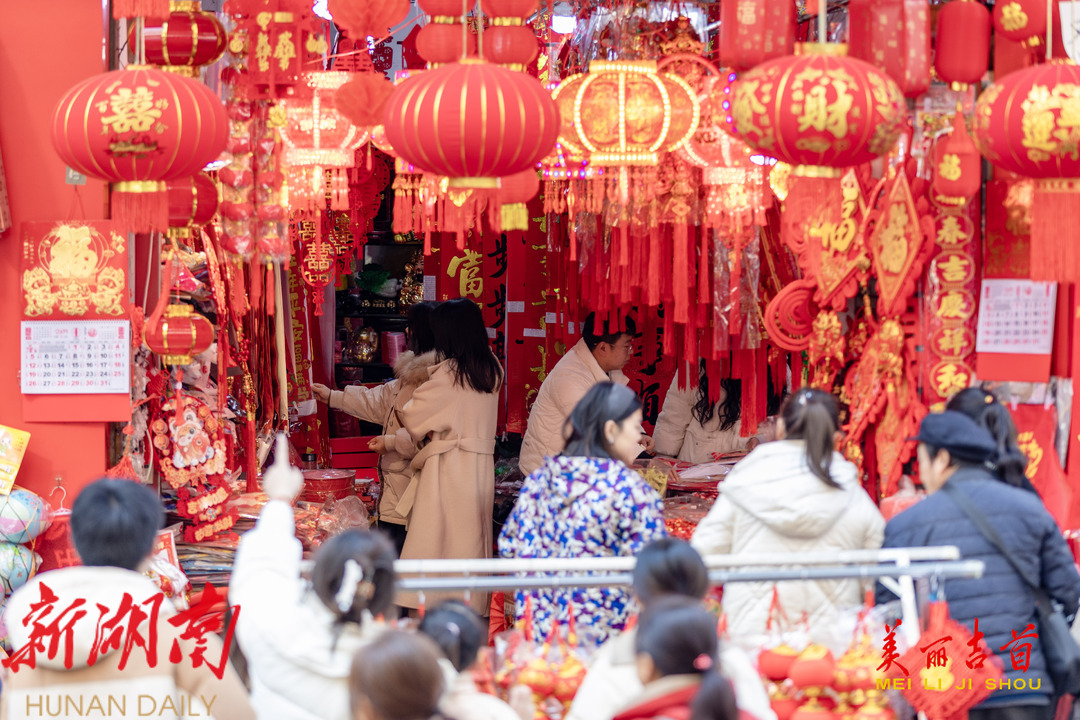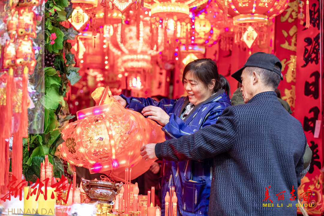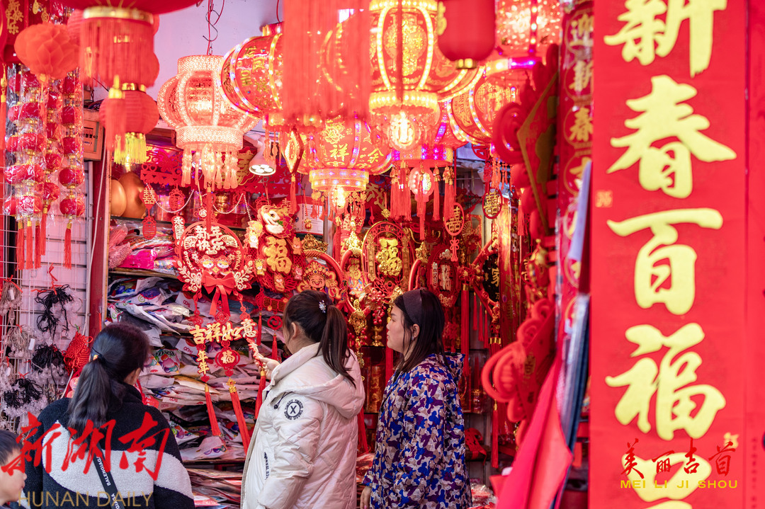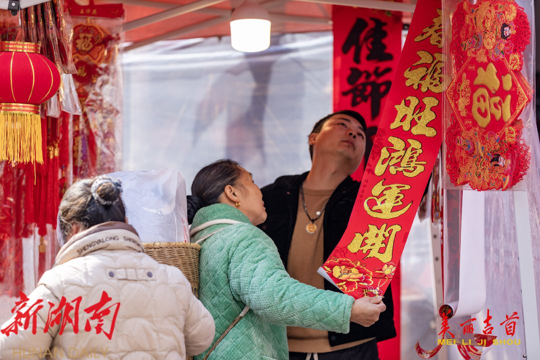 2025年1月11日,市民在吉首市关厢门批发市场选购春节饰品。随着春节临近,市场上各式各样的春节饰品迎来销售旺季,吸引众多市民前来选购灯笼、对联等,喜迎新春。