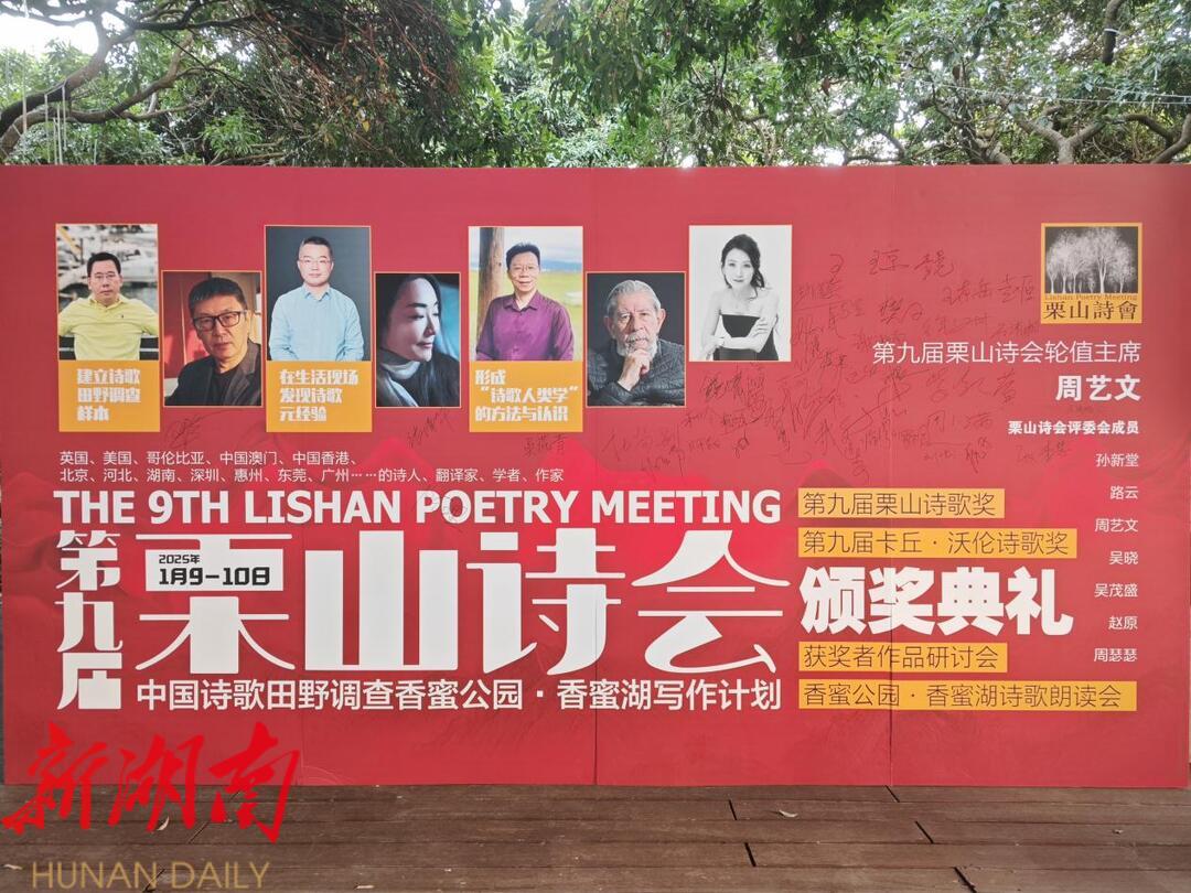 深圳诗人谢湘南获得第九届栗山诗歌奖诗人奖,中国澳门翻译家、诗人姚风获得翻译家奖,深圳批评家、诗人赵目珍获得批评家奖,旅美当代艺术家、诗人、电影导演冰逸获得诗人艺术家奖。深圳诗人、批评家太阿获得第九届卡丘·沃伦诗歌奖中国诗人奖,哥伦比亚作家联盟主席、诗人、作家何塞·路易斯·迪亚斯-格拉纳多斯获得外国诗人奖,英国翻译家、诗人凯岚获得翻译家奖。