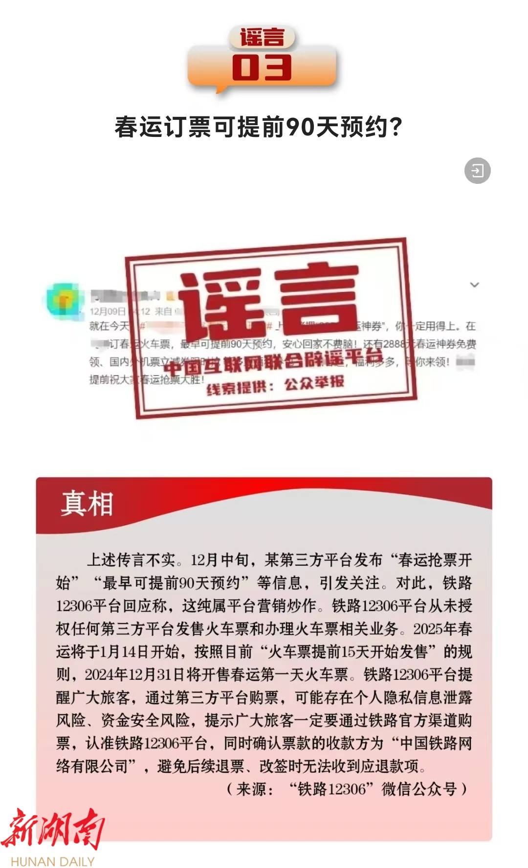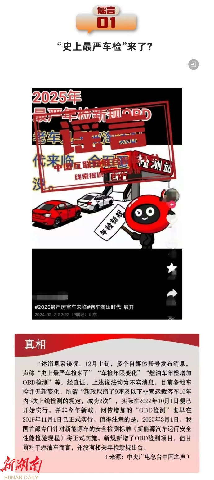 】“史上最严车检”来了?广东惠州、虎门等多地跨年夜举办烟花秀等活动?春运订票可提前90天预约?中国社会福利基金会设立“共赴小康项目”?中国互联网联合辟谣平台盘点12月热传谣言,遏制谣言传播空间,净化网络生态,营造风清气正的网络环境。