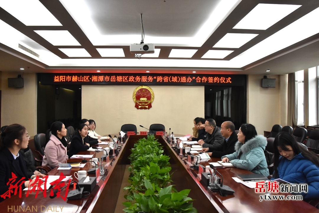 岳塘新闻网 1 月 9 日讯 ( 记者 郭思嘉 ) 1月9日,湘潭市岳塘区数据局与益阳市赫山区 数据局签订“跨域通办”协议。这是2025年岳塘区签订的首个“跨域通办”协议。
