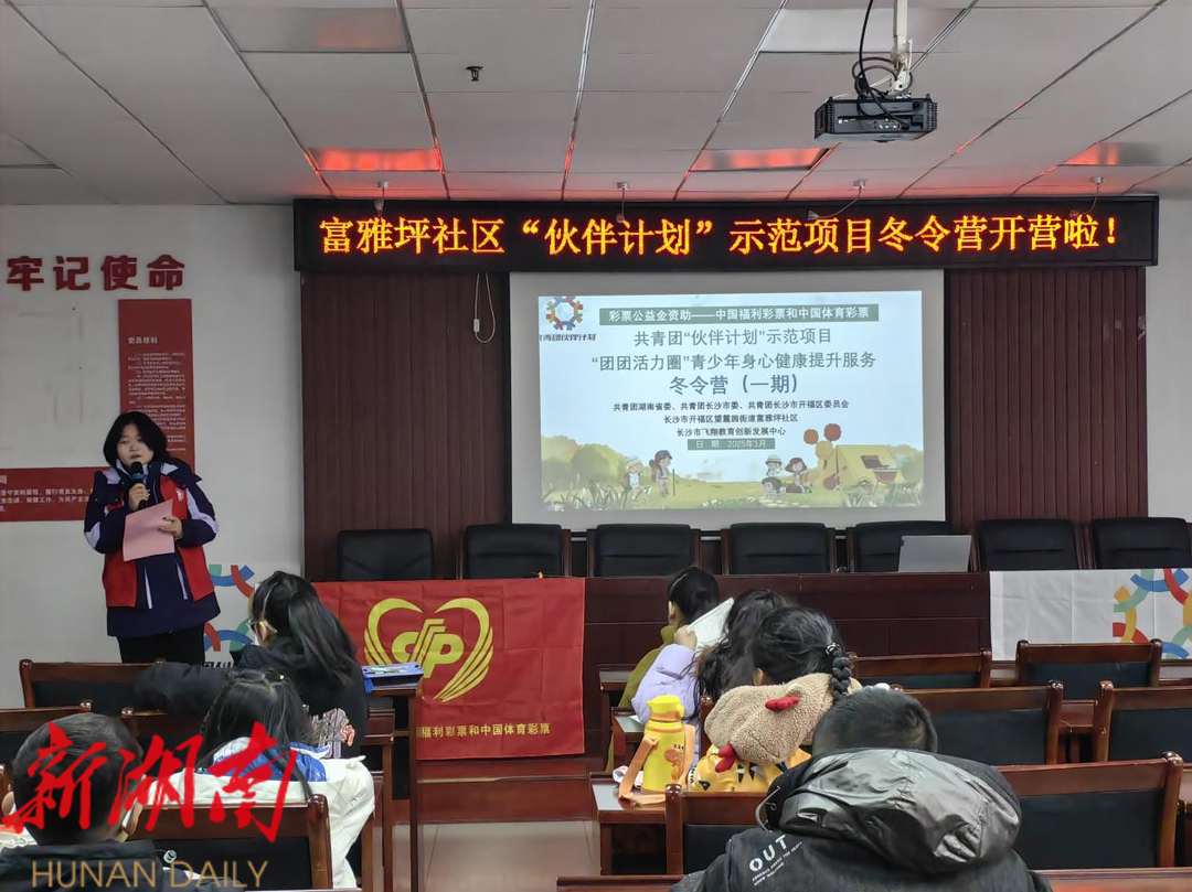 湖南日报·新湖南客户端1月13日讯(通讯员 朱秀云)为进一步营造一个思想有引领、安全有保障、成长有陪伴的快乐假期氛围,1月13日上午,在共青团湖南省委、长沙市委、开福区委的指导下,开福区望麓园街道富雅坪社区与长沙市飞翔教育创新发展中心携手,在社区新时代文明实践站举办了“伙伴计划”冬令营开营仪式。