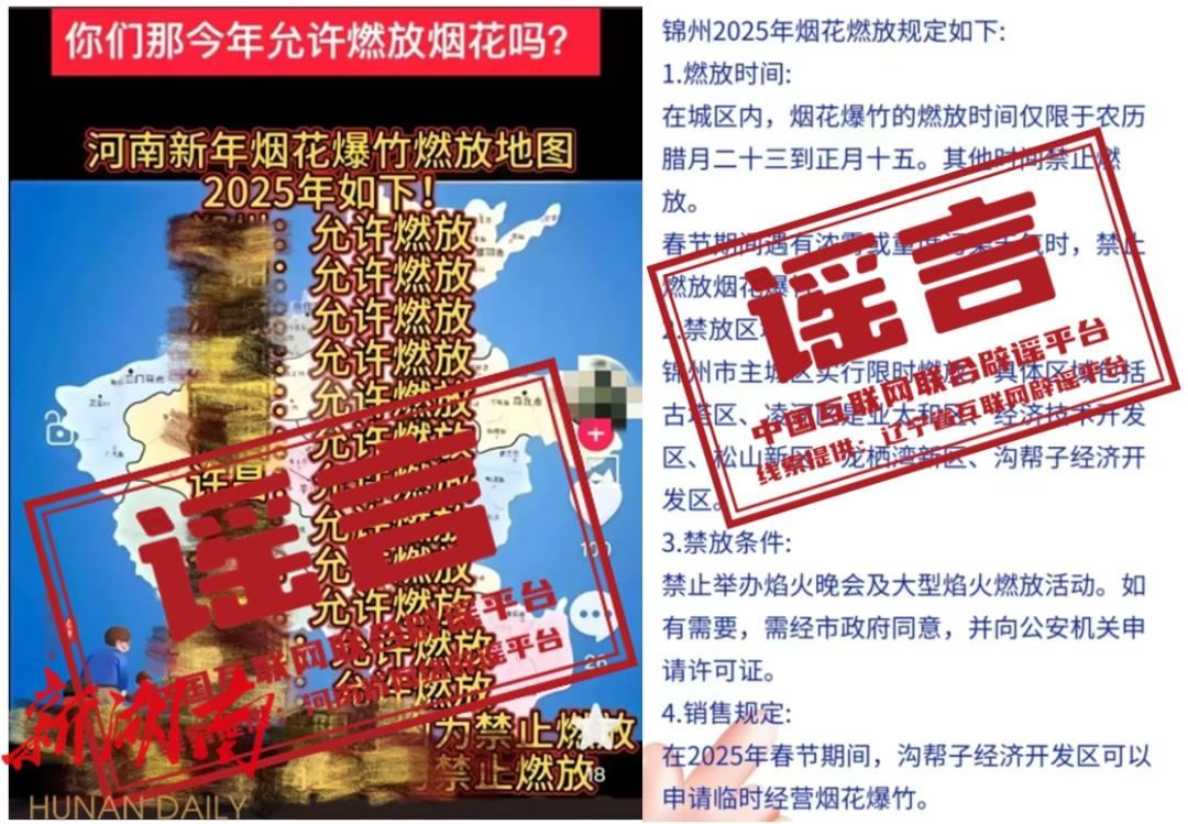 谣言:2025年河南许昌、辽宁锦州允许燃放烟花爆竹?
