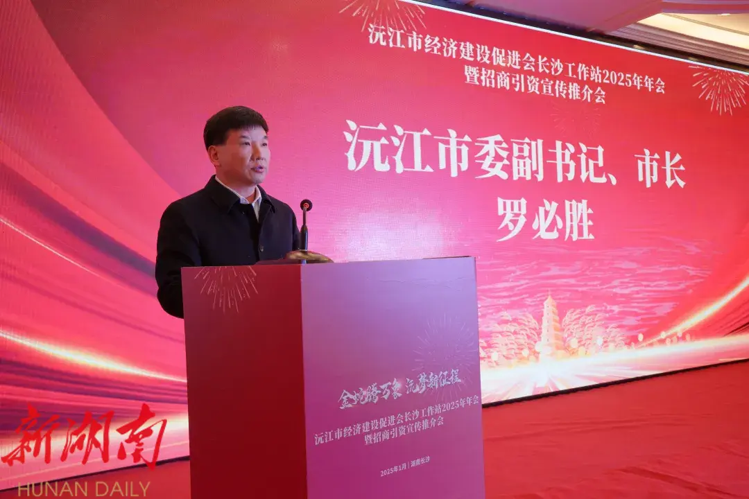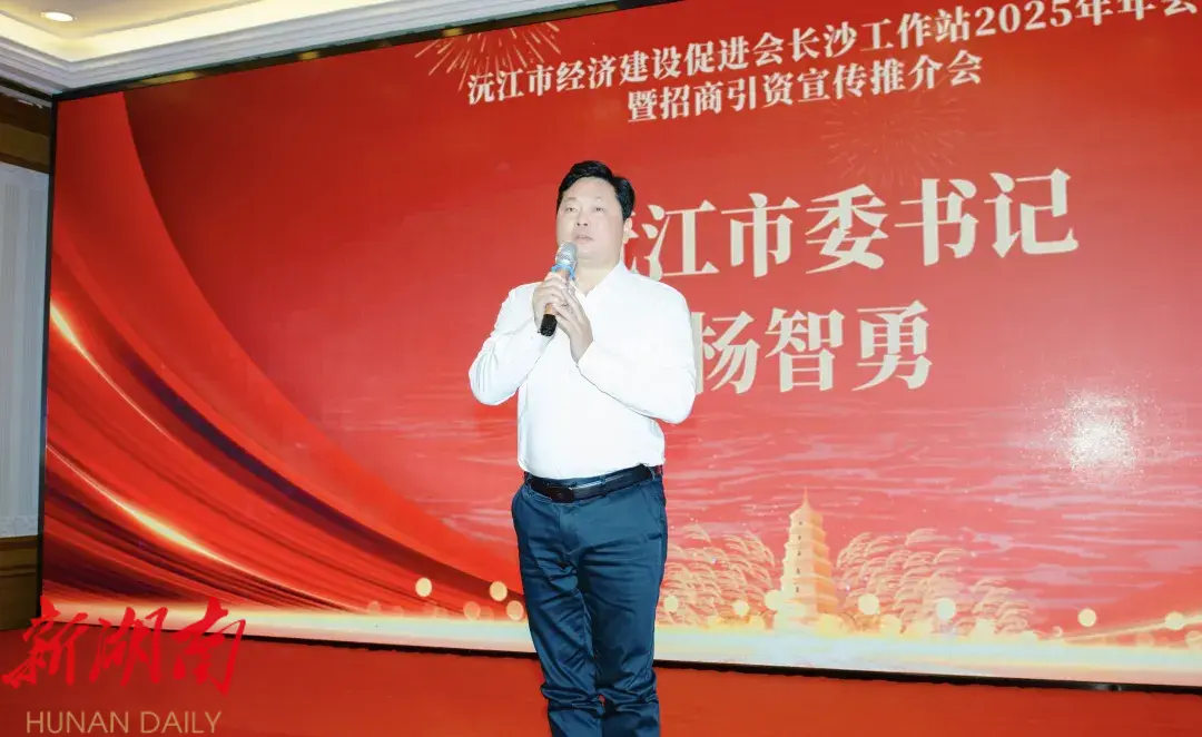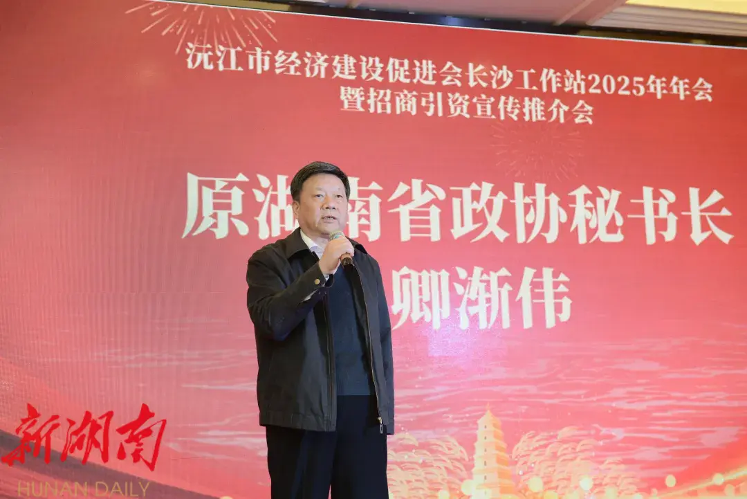 新沅江客户端1月14日讯 (记者 黄曦 李咏澎)1月12日,沅江市经济建设促进会长沙工作站举行2025年年会暨招商引资宣传推介会。省人大常委会原副主任肖雅瑜、王柯敏,省政协原秘书长卿渐伟,省公安厅原党委副书记、常务副厅长胡旭曦,武警湖南总队原副司令李德安出席活动;沅江市委书记杨智勇出席并讲话,市委副书记、市长罗必胜致辞,市委副书记、统战部长张心镜,市政协主席刘武,市政协副主席徐鄂春、谢丽君、汪交龙、孙超,沅江高新区管委会主任梁成伟及社会各界沅江老乡代表共100多人参加活动。